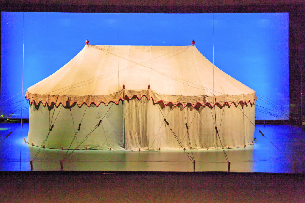 Central to this political message were colonial-era relics honoring the nation’s founders, among them George Washington’s uniform and his Revolutionary War tent from 1777—an oval, flax-linen tent twenty-three feet long and fourteen feet wide with a scalloped red wool border. It served as Washington’s war headquarters and was often referred to as “the first oval office.” For one hundred years it has been carefully preserved by a devoted nation.
