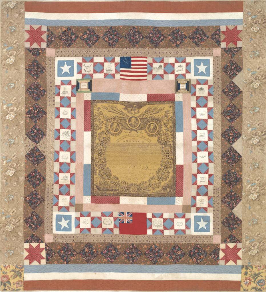 A rare example of a founding mother, Betsy Ross, only came to fame at the Centennial. It was at this time that she became legendary as the seamstress of the first American flag bearing the stars and stripes, purportedly designed in 1776 with input from Washington himself. This story was first presented by her grandson, William J. Canby, in a speech to the Historical Society of Pennsylvania in 1870. Canby was only eleven when Ross died, but he was raised with tales of his grandmother’s skills, pluck, and loyalty to Washington and the Revolutionary cause, and he was determined to spread her legacy.