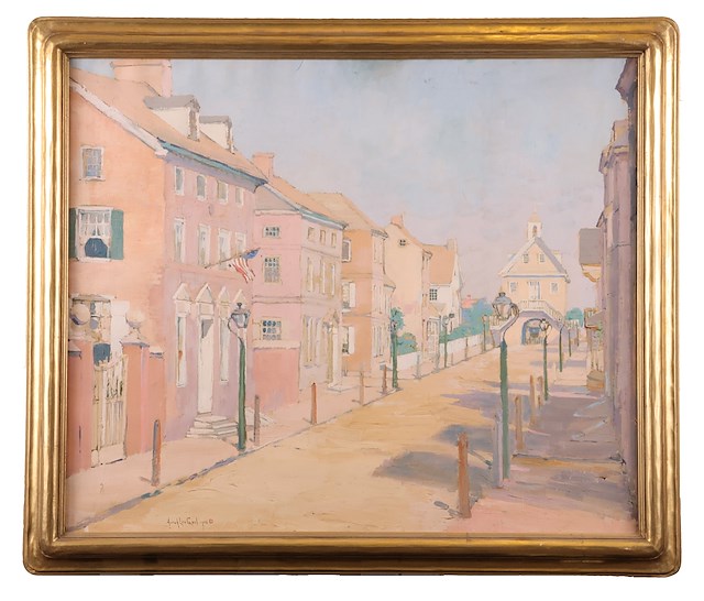 This claim was put into practice on the High Street. Several of its replica buildings had furnished interiors that landed somewhere between the idioms of the historic house and the model home; these were sponsored by department stores, decorating firms, and even Good Housekeeping magazine, and populated largely with contemporary reproductions of colonial antiques. In the case of the Washington House, a re-creation of the first president’s Philadelphia residence sponsored by the Daughters of the American Revolution, the local Arts and Crafts Guild coordinated the production of handmade reproduction furniture and other decor with an express goal of “encouraging the work of living craftsmen.”(14) Even as assembly lines were extending across factories, the colonial revival served as a vehicle for craft survival, just as much as an escapist gesture toward the past. The High Street also helped to revive interest in colonial-era historic houses still standing in Philadelphia’s Fairmount Park, prompting conservation efforts in subsequent years; it might have also been on the minds of the philanthropists and preservationists who commenced restoration efforts at Colonial Williamsburg in late 1927. (15)