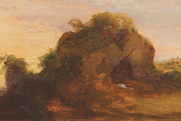 But there was more behind the appeal of miniature-scaled landscapes than their budget-friendly price tags. By distilling huge vistas of the natural world into portable pictures, the small landscape format became increasingly desirable during the nineteenth century, a period of westward expansion when images of the American landscape became essential to the development of the young nation’s identity.