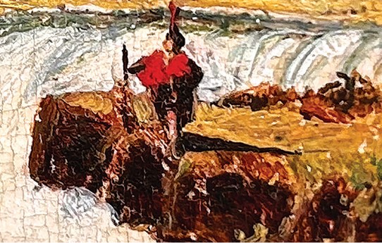 Take, for example, a tiny view of Table Rock and Niagara Falls by John Williamson, which measures a teensy 1 ⅝ by 2 ½ inches—about half the size of a standard power outlet (Figs. 3, 3a). In the foreground, a figure in native dress stands on a ledge silhouetted by the white wall of water behind. This souvenir from the most frequently pictured landmark in nineteenth-century America underlines the impulse to describe vast, overwhelming, panoramic vistas in singular, tiny images. More insidiously, it represents the visual dimensions of Manifest Destiny—a way for the Euro-Americans by whom and for whom such pictures were produced to claim ownership over the homelands of many American Indian nations, such as the Attiwonderonk and Haudenosaunee peoples of the Niagara region. “Miniaturizing the world around us is a way of achieving dominion over it,” writes the art historian Courtney Leigh Harris. “Creating a miniature of something from nature can be a method of ordering the world and gaining knowledge about it.”6 By distilling Niagara Falls into a tiny picture, the consumer can take in the whole view in a single glance. Intellectually, such an act of compression allows one to understand, grasp, or “own” something nebulous, enormous, or un-possessable.