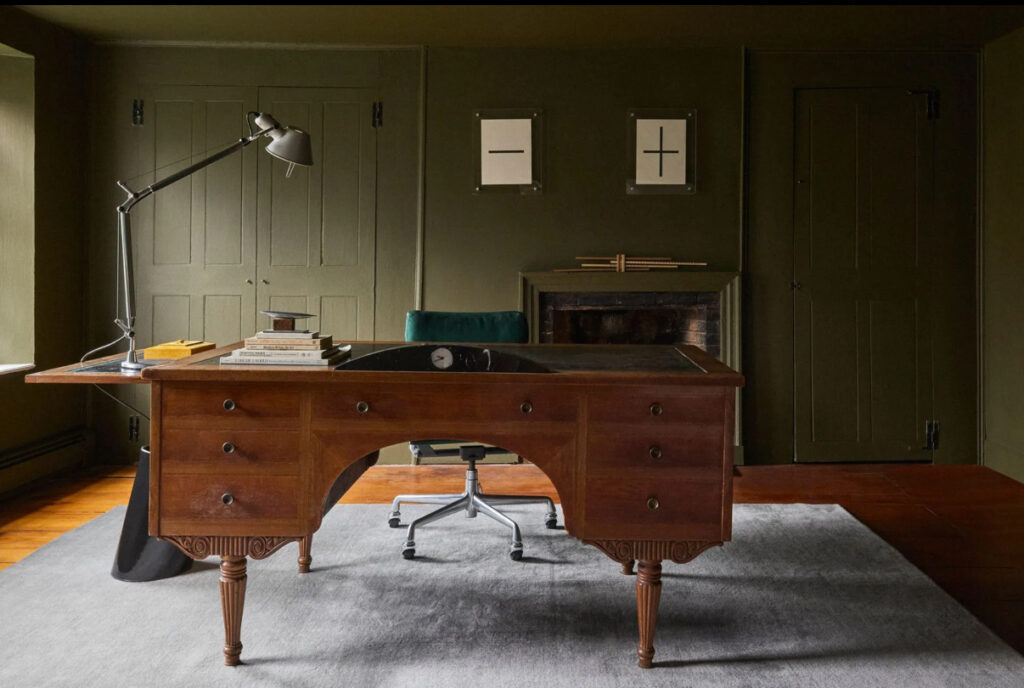 One night, during a particularly persistent bout of sleeplessness, I came across a listing for an unremarkable leather-topped mahogany desk, with false drawer fronts and spindly little legs. The images were washed out, unedited, and likely taken hastily on an Android or the like, and yet, I found myself bidding. I won it for ninety dollars plus tax and the buyer’s premium. The next day as I sat down to work, I was surprised to find the invoice in my inbox. I had completely forgotten about my nocturnal acquisition.