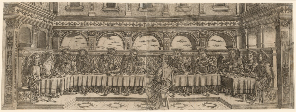 The exhibition, which opens September 7, is arranged along sacred and profane lines, with abandon and Bacchanalia coursing through one gallery, the devotional and biblical standing resolute in another. Taken together, one is reminded that the distance between pleasurable expectation and regrettable dissipation is often brief. In the engraving Bacchanal with a Wine Vat (1470–1780), Mantegna depicts a self-possessed Bacchus surrounded by those in their cups.