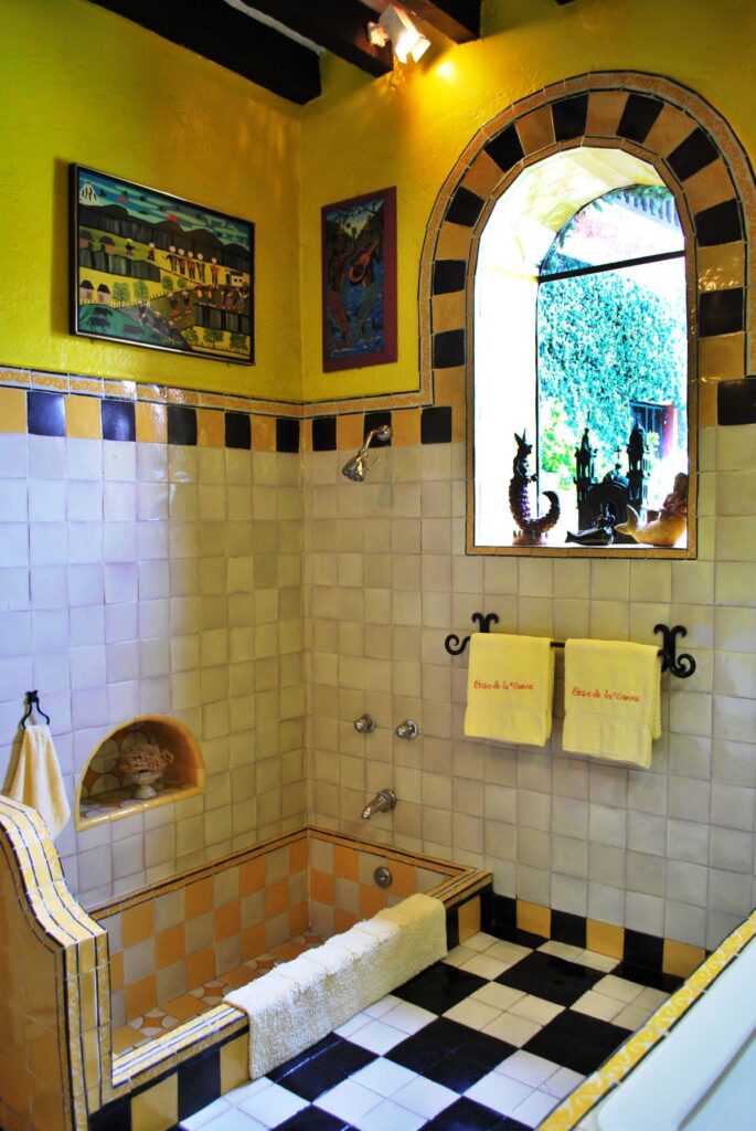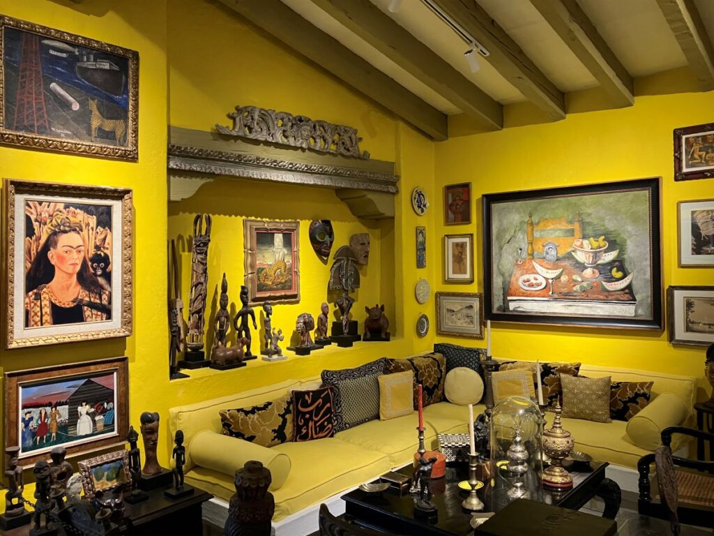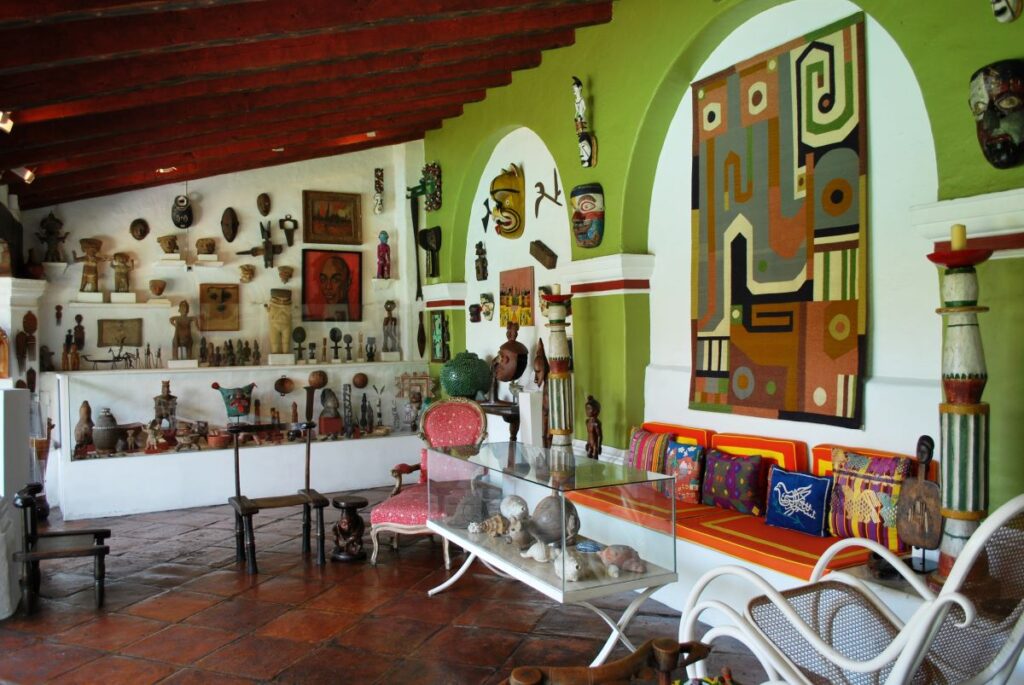 More than just a collector, Brady decorated every room in the house, relying on a palette of yellow, blue, green, and red-orange—what the house’s caretakers call “Brady Colors”—to imbue each space with personality and a specific atmosphere. The luxurious Yellow Bathroom on the ground floor, in hand-painted Talavera tiles, houses a collection of Haitian folk art (Fig. 5); the Green Bathroom upstairs, with its blue-and-white tiles, accommodates figure studies—many of them nude—by Miguel Covarrubias, the nineteenth-century Mexican academicists Juan Cordero and Pelegrín Clavé, Honoré Daumier, Giorgio de Chirico, and a print by Brady of Josephine Baker.