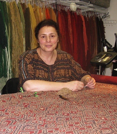 Textile conservator Vera Indenbaum is a testament to the power of effective apprenticeships. Born in the former Soviet Union, she happened on an advertisement for an apprenticeship in rug conservation. From there, her career led her to work at the Museum of Decorative Art in Moscow, where she had the opportunity to work on a variety of tapestry conservation projects, including ones in Vilnius (Lithuania), on flat-woven textiles in Baku (Azerbaijan), and on all kinds of European textiles at the Kremlin Museum. She now works in private practice in the United States, working with a wide range of textiles.