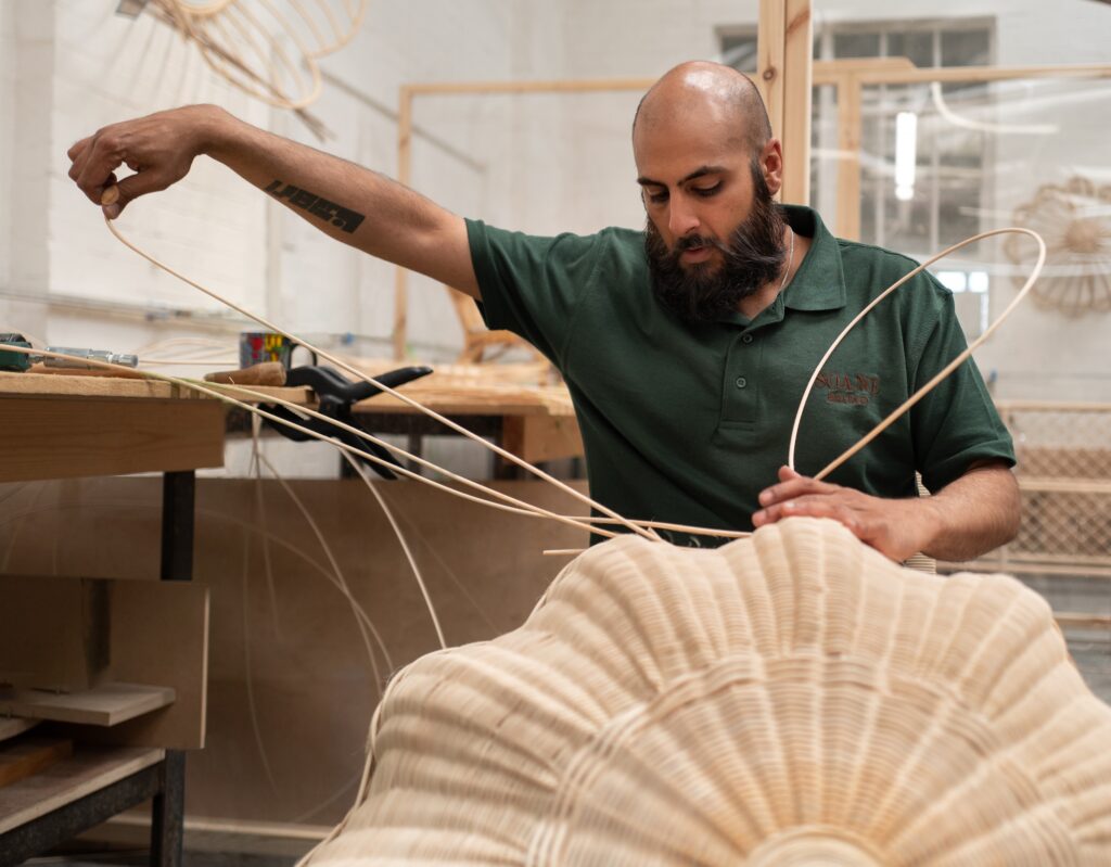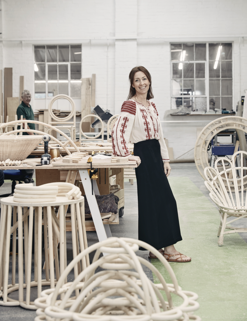Heritage silversmithing techniques aren’t the only skills that are endangered. According to Lulu Lytle, creative director of Soane Britain, and whose love for antiques was sparked by museum visits in childhood, furniture making, basketry, pietra dura, parchment and vellum-making, papermaking, and rattan furniture–making are among the most endangered crafts. Over the past fifteen years, Soane Britain has revived the last rattan workshop in the UK, after its unexpected closure in 2010 after ninety-nine years in business. In 2013 Soane initiated a rattan apprenticeship program to keep the skills alive. To date, four craftspeople have successfully completed the course, and ten more are currently in training. Today, the reopened workshop employs seventeen rattan craftspeople, making furniture and lighting for clients globally, with more than 70 percent exported to the US.