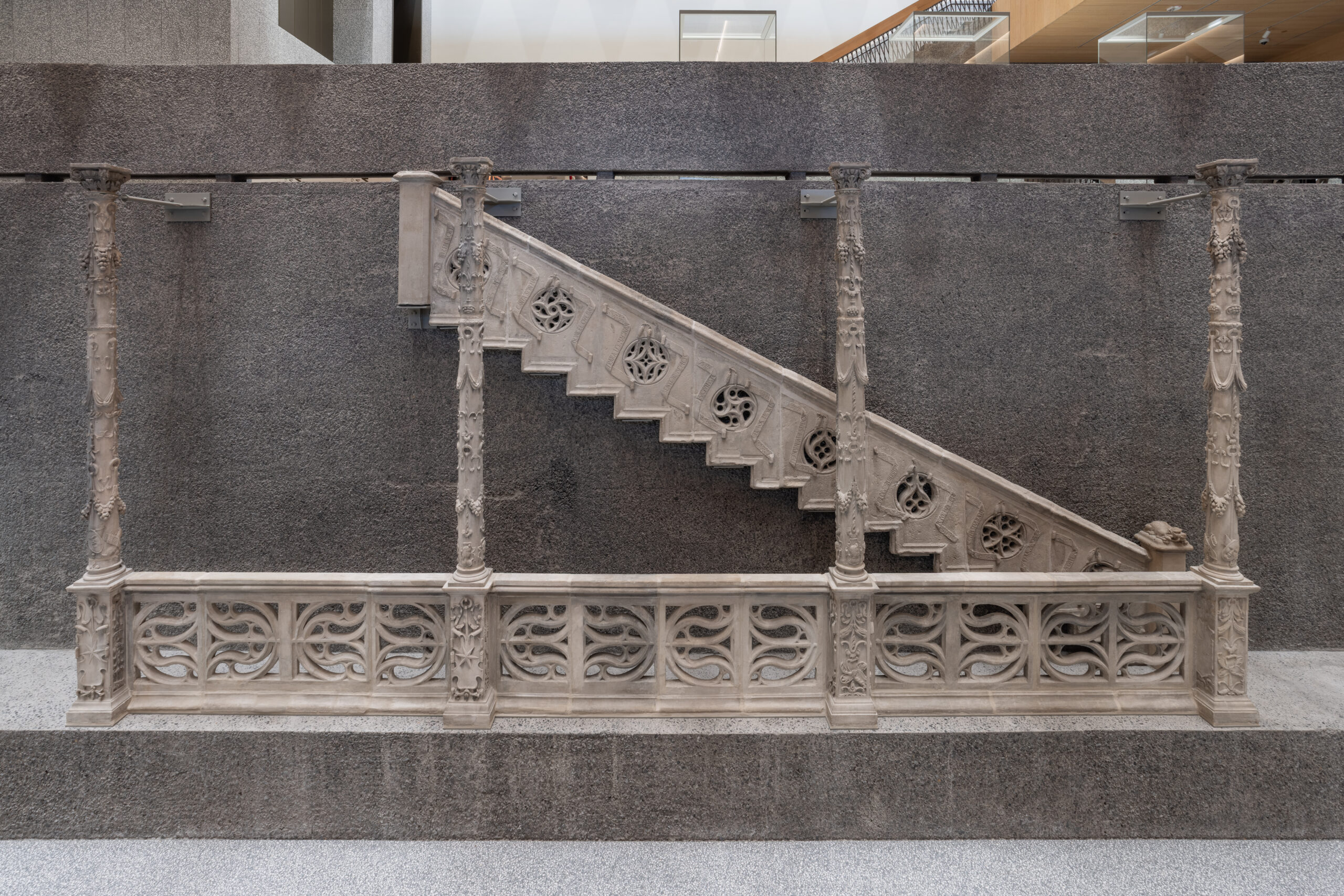 Alexandra Letvin, the museum’s associate curator of European art, says the fragments had long been “beloved, but not very well known.” She was hired in 2022, when the new building was under construction and the Mallorcan carvings had been dismantled to undergo cleaning and conservation (the Maryland office of Ever Greene Architectural Arts handled the project). Long nicknamed the Spanish Stairs, they had served as pedestrian routes in the museum’s Medieval Gallery, and they were said to have come from one sixteenth-century building in Mallorca—the date 1549 is carved into a column base.