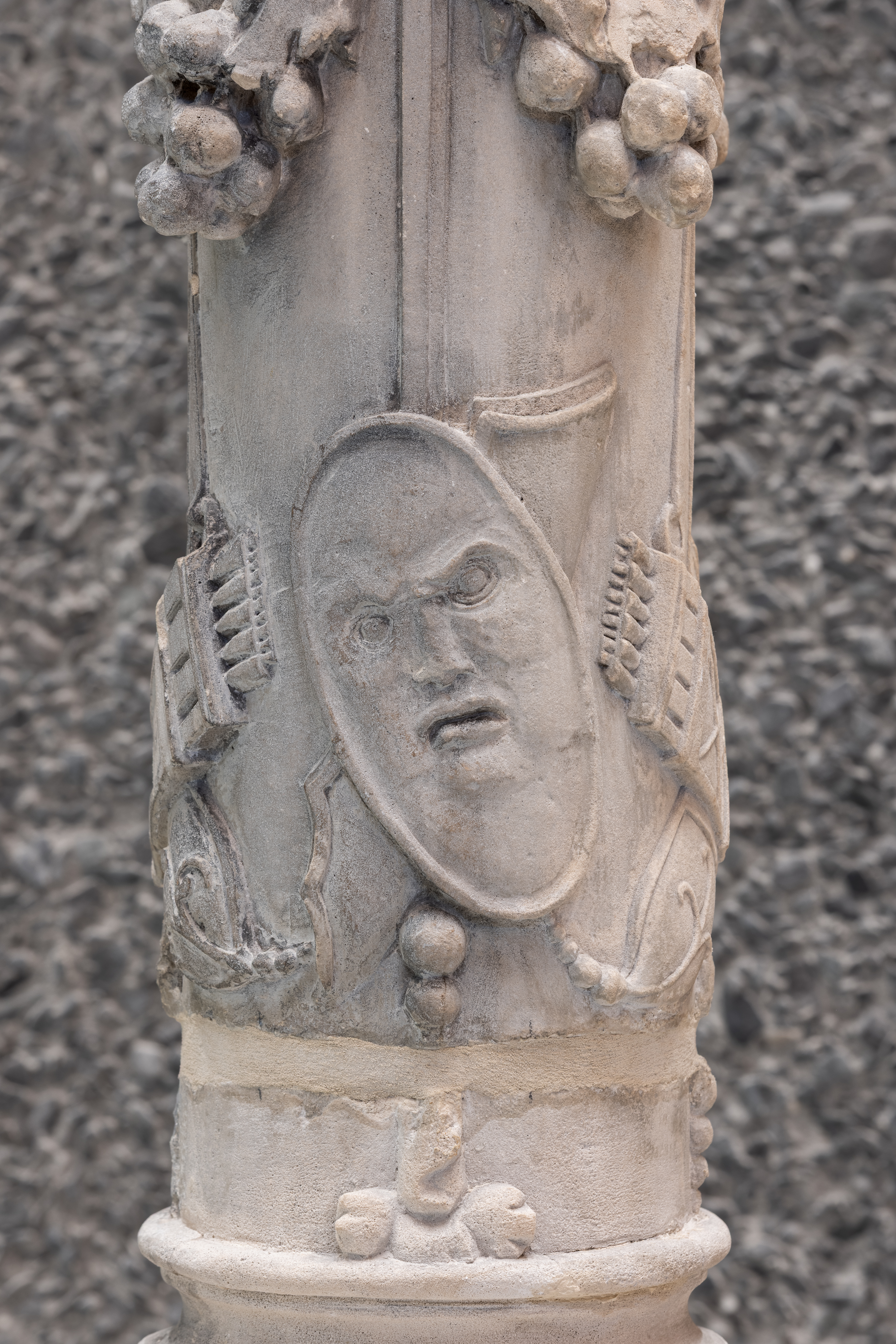 For the new museum’s lobby, they have been rechristened the Mallorcan Stairway and Gallery Elements (the French window has been installed in a nearby corridor). The inscription along the staircase railing is now hard to decipher but has been loosely translated as a prayer for the Lord’s mercy, and there are a few inscrutably effaced inscriptions on the column bases. But some crisp details on these well-traveled stones—the date 1549, for instance, and the skeletal ribcage on the newel post’s fanged creature—practically seem freshly carved.