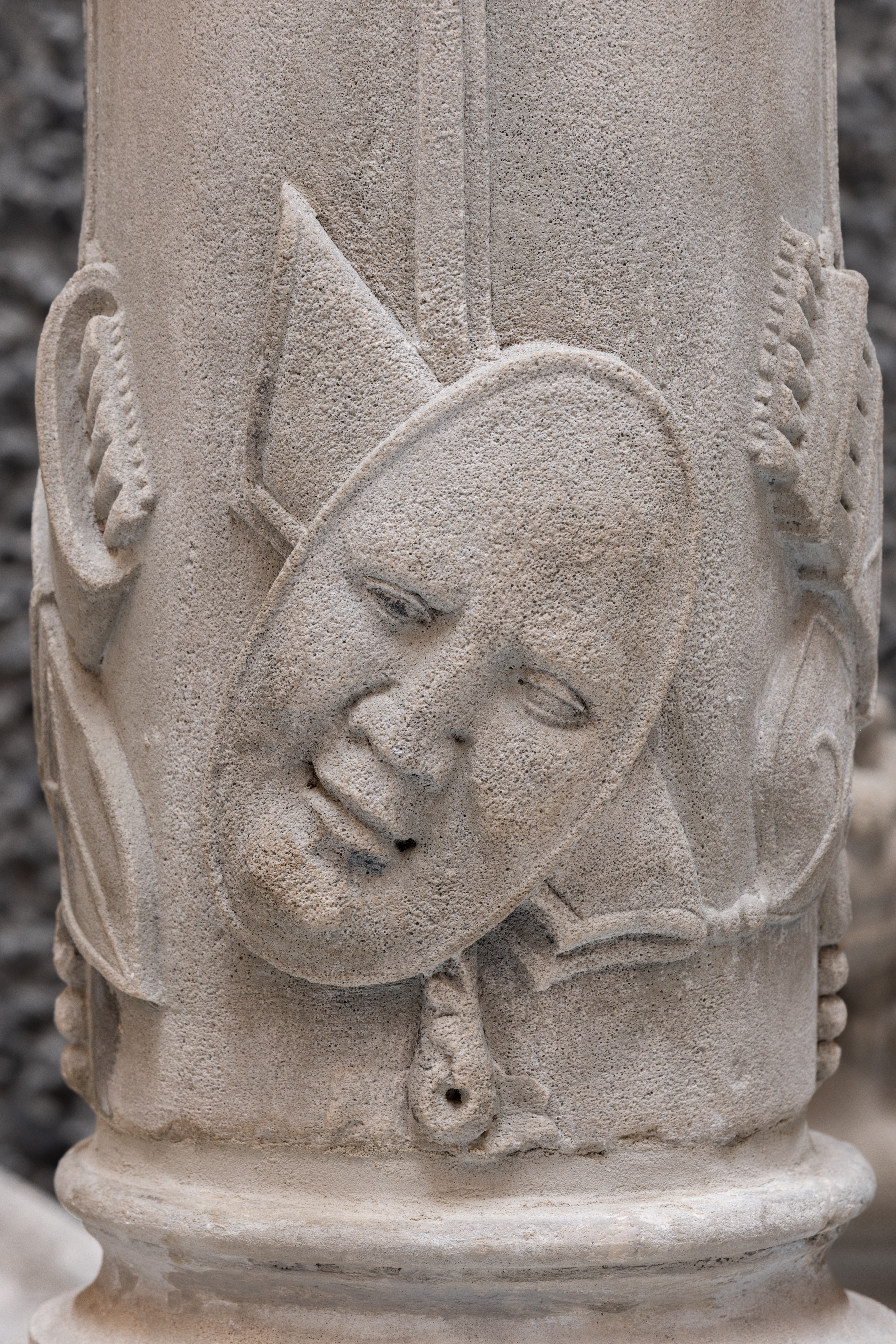 Details of mask decorations on balustradesfrom the Can Ayamans.