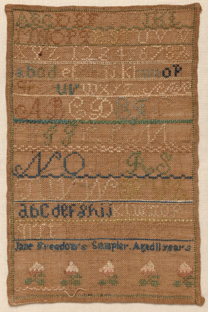 Jane Freedom’s sampler is such an act of self-creation, which included stitching her own name. Especially in a society that condoned slavery, that act might have been even more meaningful for a girl named “Freedom.”
