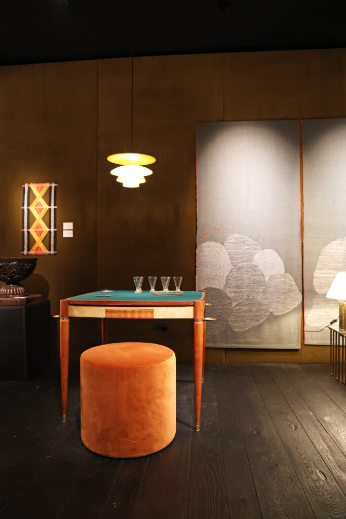 Each booth feels more like a room lifted from a flagship showroom than anything. Rose Uniacke, a London-based design studio and gallerist, may have been one of the most successful at accomplishing this feat. Moody lighting within a shadowy interior, candles lit (what was that scent that smelled so good?), an Italian, circa 1940 parchment games table by Paulo Buffa studded with brass ashtrays at each leg, topped with cards ready to deal, and cocktail glasses needing a refresh, created an inviting vignette.