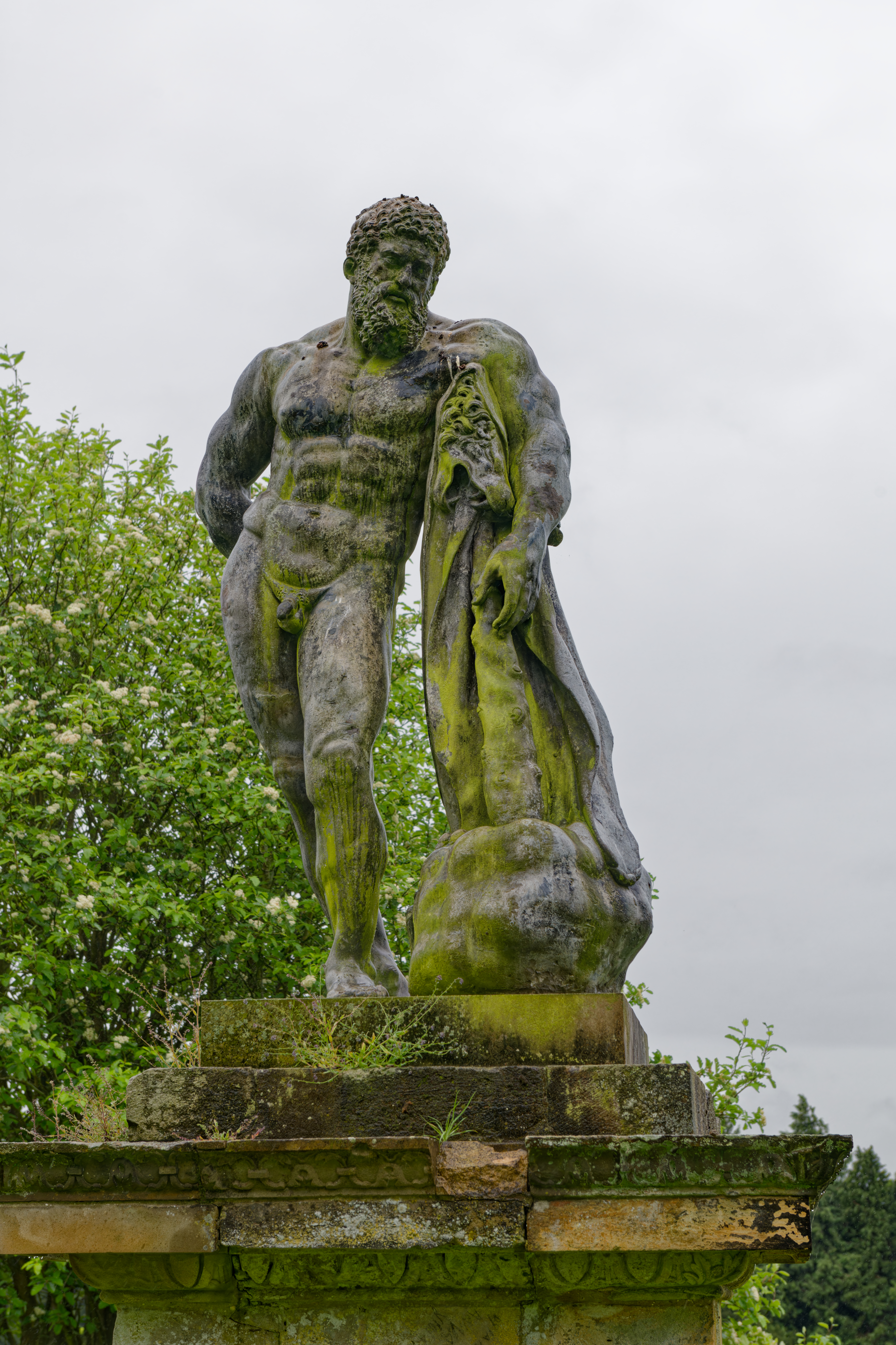Lead copy of the Farnese Hercules originally by Glykon of Athens, c. 200–300 AD, by Andrew Carpenter (c. 1677–1737), 1723. Castle Howard, Henderskelfe, North Yorkshire, England; photograph by Tilman 2007 on Wikimedia, 2024.
