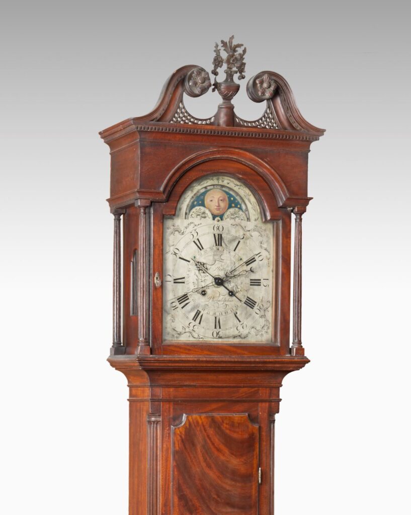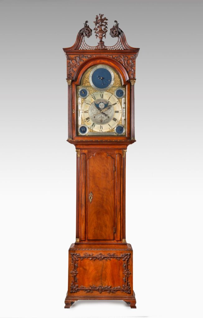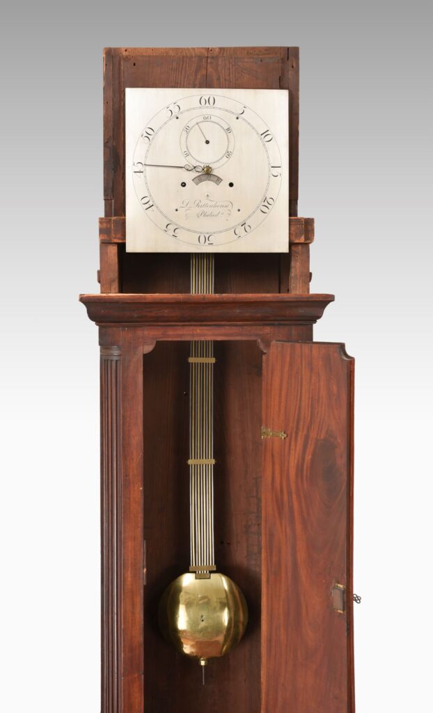The authors originally intended to present a much larger assemblage of Rittenhouse clocks, but soon realized that the famous name adorned the dials of many more clocks than the brothers made. From the time of the American centennial, “Rittenhouse” clocks proliferated, usually created by renaming Pennsylvania clocks from the period—easily done on the removable silvered dial bosses and plates on which signatures typically appear. The Catalogue highlights twenty clocks—ten by each brother—from sixty-seven the authors examined and believe to be genuine, determined in part by the distinctive engraving of their signatures.