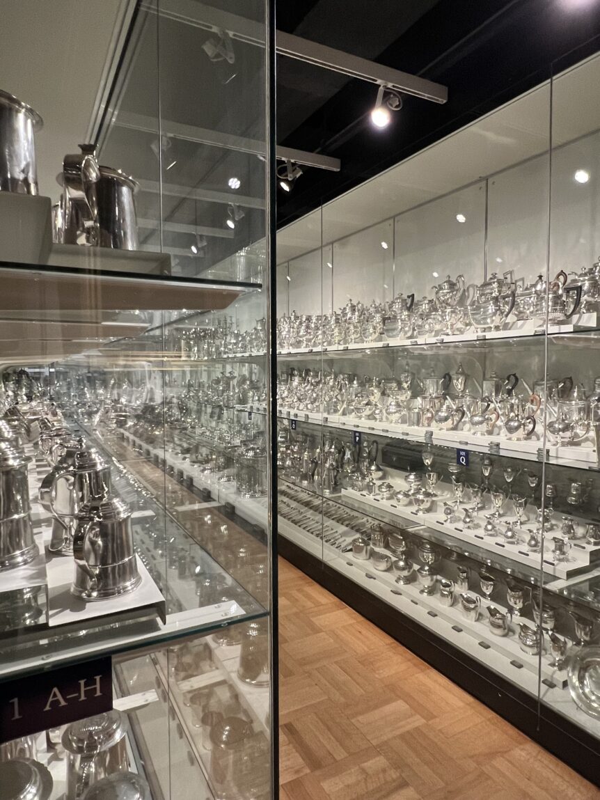 The Luce Center is where you will find us, mouths agape, eyes wide, admiring rows upon rows of glass-protected silver teapots, Gilbert Stuart portraits, brass curtain tiebacks, shell dishes, pressed-glass goblets, and more. Some are identified with just numbers, others with names and dates, which is where the Luce Center could use some work. That being said, we are happy to take notes and then, back home, look closely at the desired antique, virtually,