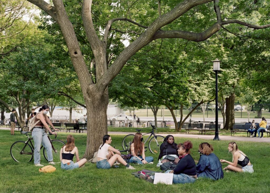 In images such as Rebel Works in Front of Atlanta, Ga., No. 1 (1864) by the Mathew Brady associate G. N. Barnard, Charles Moore’s decisively captured Martin Luther King Jr. Arrested, Montgomery, Alabama (1958), and High School Students after Black Lives Matter Protest, Lafayette Park, Washington, D.C. by An-My Lê, to cite but a few, viewers can trace that most axiomatic of arcs as it bends, if not toward justice, in the direction of some sort of change. That same grouping may also be used to teach a history of the medium, from its early use as a tool of reportage, to photographers’ embrace of straight photography—which melded sharp focus and unfussy surfaces with a mandate to depict the social world as it is—until ending up, apparently, at a place between the two.