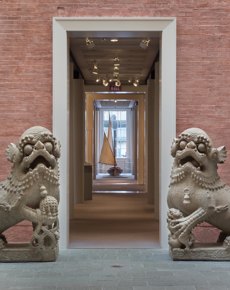 But let us back up a moment for a few facts: Peabody Essex was originally two institutions, the Peabody Museum of Salem and the Essex Institute. A bold sea change came about in 1992 when the two were joined and the first of PEM’s stupen­dously successful fund-raising campaigns ($194  million) followed by a wing designed by Moshe Safdie resembling the billowing rigging of a sailing ship announced a new era. By 2003, when the museum installed the two-hundred-year-old Yin Yu Tang house brought over from China, it was clear that PEM was remaking itself on a grand scale. An additional 175,000 square foot expansion, which was to be designed by the late Rick Mather, has now been awarded to Ennead Architects (formerly Polshek Partnership) and should open in 2019. The museum continues to collect and present Oceanic, Asian, American, and Native American work, and it con­tinues to be insistently curious about the effect these things can have on the lives of its no longer affluent Salem neighbors as well as on our own.