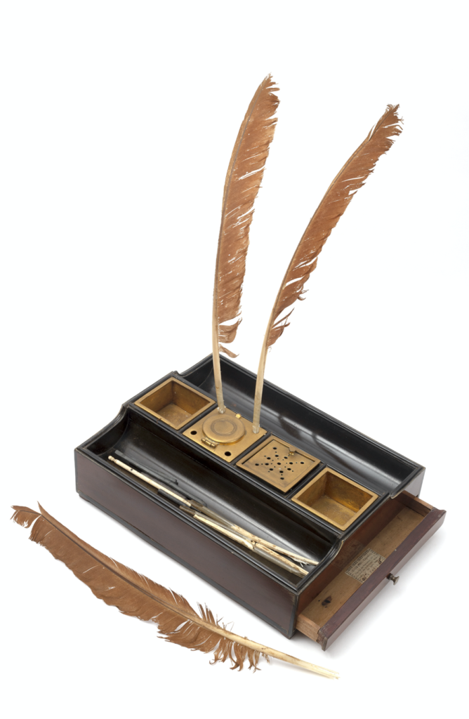 In the decades surrounding the American Civil War, women used the language of the Declaration to explain their efforts to secure greater civil rights. Elizabeth Cady Stanton, who authored the Declaration of Sentiments, a product of the 1848 Seneca Falls Convention, wrote that “all men and women are created equal.” She dedicated her life to combating prejudicial treatment of women. An oak desk she used late in her career is on loan to the exhibition from her great-great-granddaughter, Coline Jenkins.
