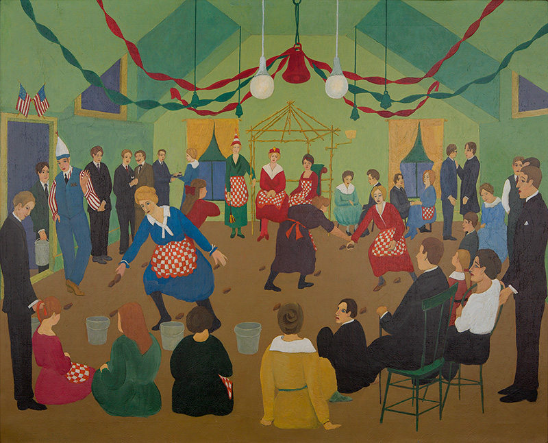 Perhaps the larger question is why Gaylor—who studied art at the conservative National Academy of Design in New York, and surely would have learned classical techniques for modeling figures and creating depth on the canvas—painted the way he did: in a flat, almost naive style similar to those of Grandma Moses and Horace Pippin. Gaylor was a collector of early American folk art and—like Halpert—helped promote it as a distinctive and estimable genre. Rosen posits that for Gaylor and other artists of the day “embracing early American art was one method artists used to validate an inherently American modernism in the 1920s,” set apart from both academic art and avant-garde European movements such as cubism and fauvism.